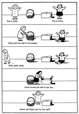 W dzieciństwie powinna rozwinąć się zdolność do rozumienia własnego i cudzego umysłu. Według przeprowadzonych badań (Wimmer i Perner) udowodniono, że dzieci w wieku około 4 lat są w stanie udzielić poprawnej odpowiedzi na powyższe zadanie poprzez tzw. przyjęcie perspektywy wizualnej. Już na wczesnych etapach dzieci mają świadomość, że druga osoba ma w swojej głowie pewną wiedzę (około 2 roku życia).